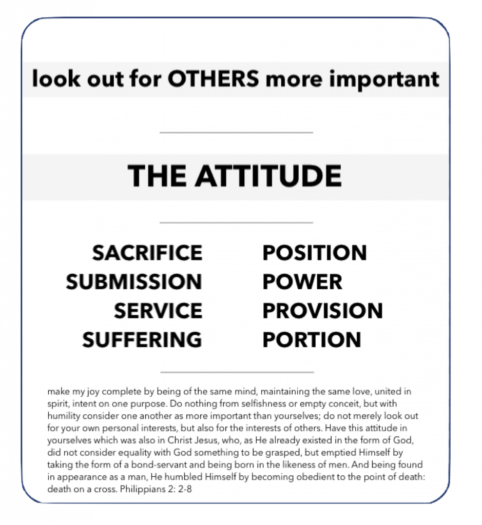 Jesus gave up His position (His sacrifice), which He could have clung on to but He didn’t. He emptied Himself of His power, and stepped down to being a human, a big step for our creator, stepped down even further to be a servant, but it didn’t stop there. He took another step and died for me, but not just an ordinary death, a step further; a suffering death. We are now called to imitate this. This attitude we see in Jesus. What an amazing, awesome, bewildering humility ! With sacrifice, submission, and service comes suffering but consider it a joy as in James 1: 2.