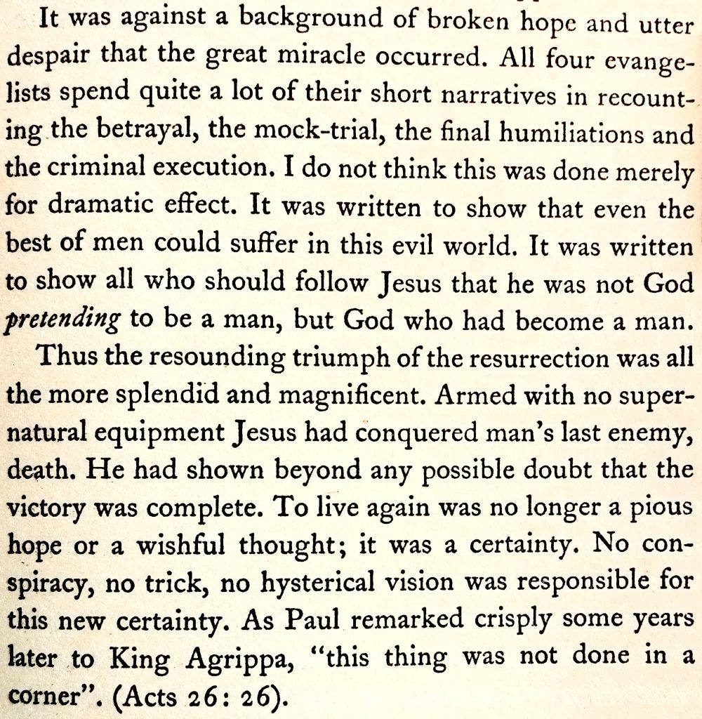 I was fascinated by this passage which is an extract from a book I was reading – JB Phillips’ “Ring of Truth” and it stopped me. Made me read it again and again. The wonder and amazement grew with each read. The resurrection was the breakthrough, and with the coming of the Holy Spirt, together, completely changed the disciples and other followers, empowered them with boldness, confidence and certainty. It was not a covert operation! Is it not enough for us ?